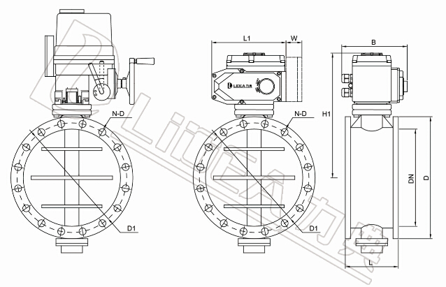 | 规格型号 | DN | L | D | D1 | L1 | H1 | Z-ФD | E-电动头 |