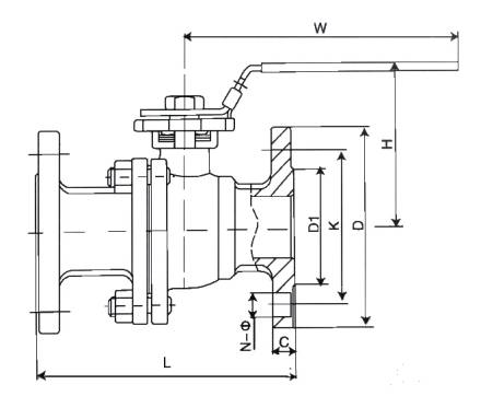型号 | DN | L | H | W | D | K | D1 | C | N-Φ |