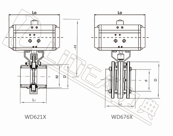 | 型号 | ISO | L1 | D | M | L2 | D | d | L3 | D | d | L4 | D | d | Lo | ~H | 执行器型号 |