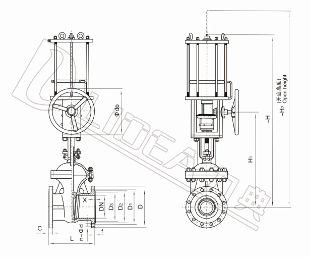 | 结构长度 GB/12221 ANSI B16.10 | 手轮机构 转动手轮机构,可实现手动开、关阀 | |